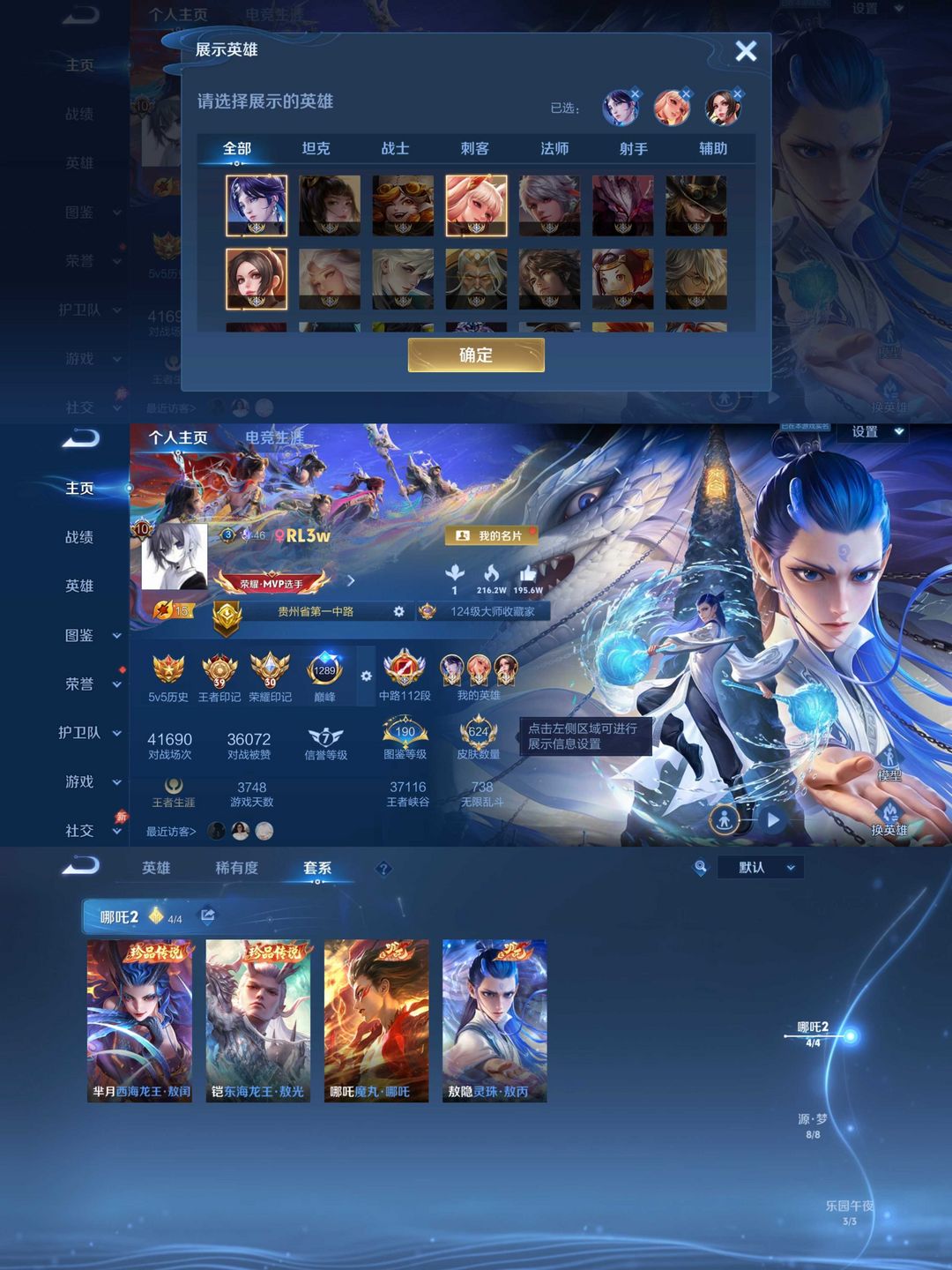 本游戏账号: V10无双贵族用户,基础段位:最强王者,英雄多,皮肤多。典藏皮肤9个,感受典藏皮肤带来的优质体验快感,FMVP皮肤8个,尽情享受FMVP皮肤带来的主角光环, 私人所属英雄皮肤有:瑶 拾光映像||貂蝉 幻阙歌||夏侯惇 无限飓风号||关羽 赤影疾锋||花木兰 九霄神辉||诸葛亮 星域神启||李白 鸣剑·曳影||孙尚香 杀手不太冷||小乔 天鹅之梦,等等