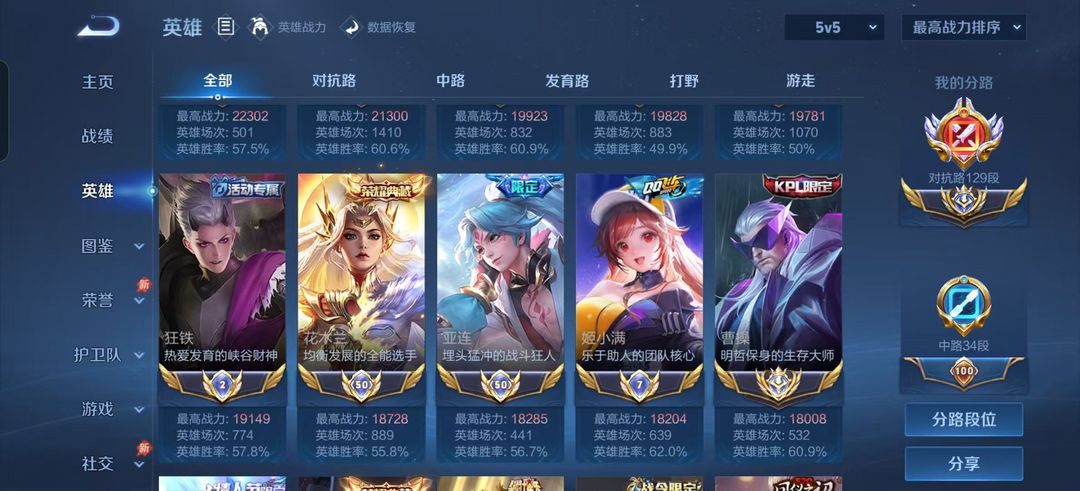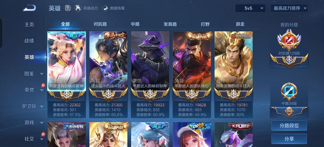 正式服在榜129段五十强对抗路⭐2w2五国服夏洛特马超吕布关羽曹操⭐v10超多限定皮肤⭐可排位